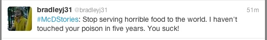 Regardless, instead of the nasty tweets appearing at the top of search, now all that’s attached to the hashtag are tweets about their social media flop – #McFail.